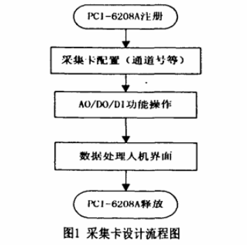 完善的软件支持。在VB编程环境下,用户无需了解太多采集卡的工作原理等细节问题,只需在用户程序中加载DLL,调用其相应的函数即可完成对采集卡的各种操作,加快客户的项目开发。其软件编程的设计流程:PCI-6208注册——采集卡配置(通道数等)——AO/DO/DI功能操作——数据处理人际界面——PCI-6208释放。
